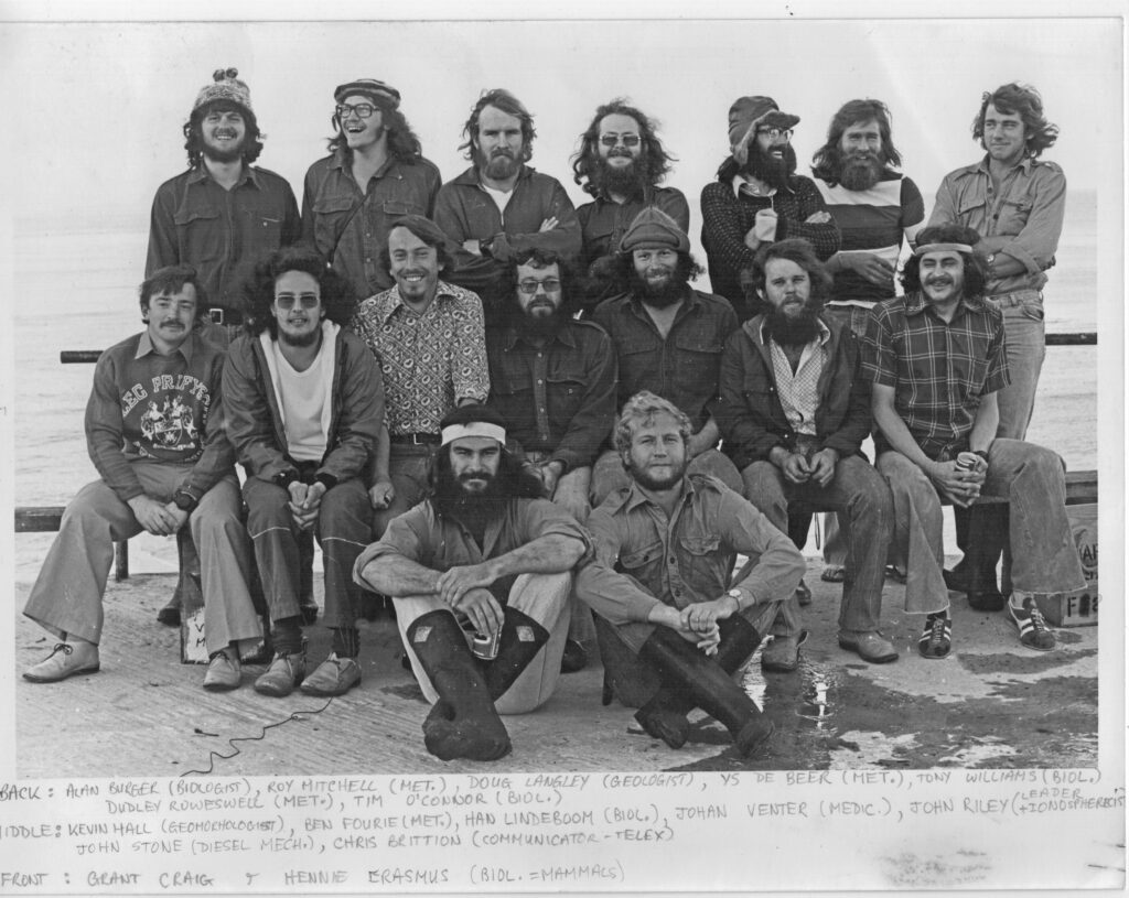 Tony Williams is in the back row, third from the right with the 33rd Overwintering Team (1976/77) on Marion Island, photograph from Alan Burger