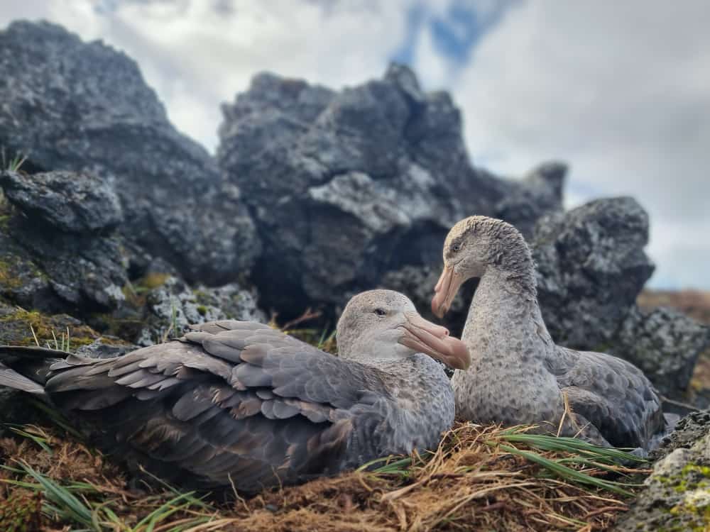 A breeding pair of Northern Giant Petrels Macronectes halli on Marion Island; the noticeably larger-billed male is on the nest at left. Photograph by Michelle Risi